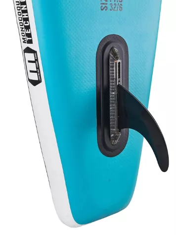 The BLUE SERIES MFT FREERIDE & TOURER combine latest shapes, technology and value for money. These models are lightweight and very stiff, with balanced handling that blend reactivity and stability in perfection. MONOCOQUE FUSION TECHNOLGY is a special manufacturing process where the pvc topcoat is “fusioned” to the drop stitch layer. This results in superior, lightweight and stiff inflatable sup boards – given the price point a benchmark in the industry. The large dimensions in 10´10″ / 11´8″ / 12´6″ feature speed and added stability . Thus they are great models to choose for yoga, free ride, touring and also heavy weight riders. The shapes are designed to float and glide easily on flat water. Given the larger length they offer the sensation of speed and a big touring radius. The curve and pulled in tail keep these boards reactive so that they are capable to surf soft waves with control.